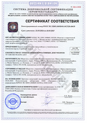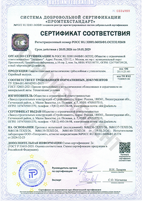Также для производства сэндвич-панелей используется холоднокатаная горячеоцинкованная тонколистая сталь толщиной 0,4-0,7 мм высококачественное декоративное защитное полимерное покрытие.